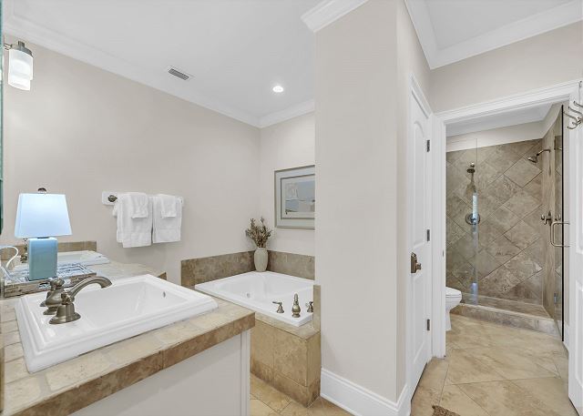 - Master Bedroom: King Bed, Private Bathroom with Shower and Jacuzzi Tub