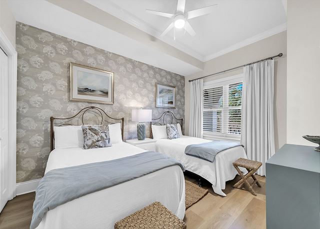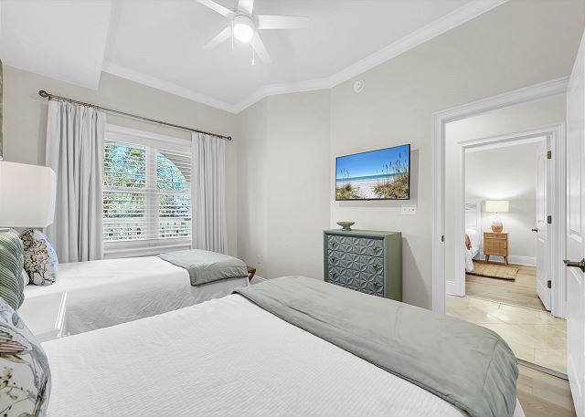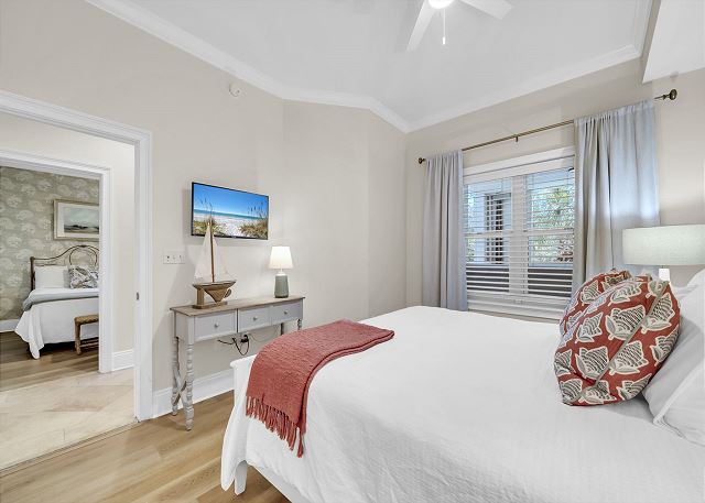 All the bedrooms are luxuriously furnished. The three main bedrooms are equipped with flat screen HD TVs. Furnishings are high end such as Tommy Bahama, Ralph Lauren and Palecek to name a few. Beautiful art and hand painted decor.