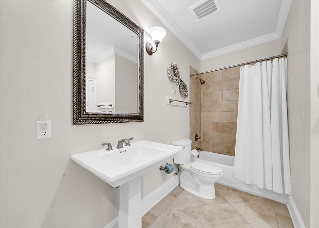 - Guest Bedroom: Two Full Beds, Bathroom with Shower Tub Combo
