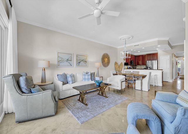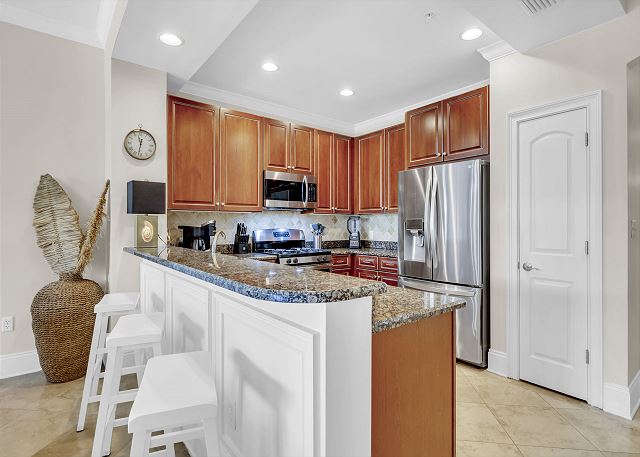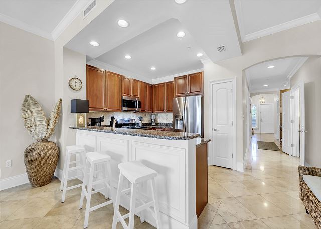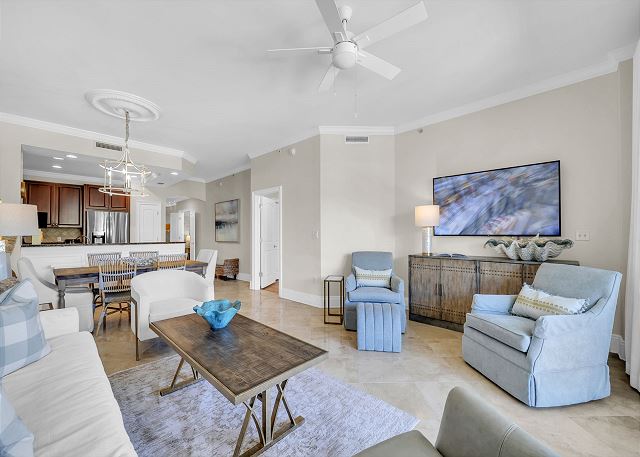 This is our 2nd time to Adagio this year because it is the perfect vacation spot! This unit was clean and decorated beautifully! I loved all the outdoor patio furniture! When we noticed our blender top was missing, there was a knock on the door with a brand new Ninja blender! We love this location, the pools, the bike & umbrella rentals on the property, and the location on the beach. Wonderful vacation!!