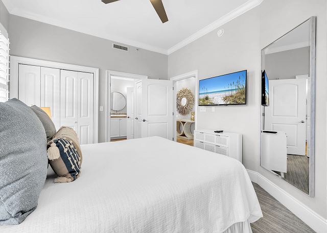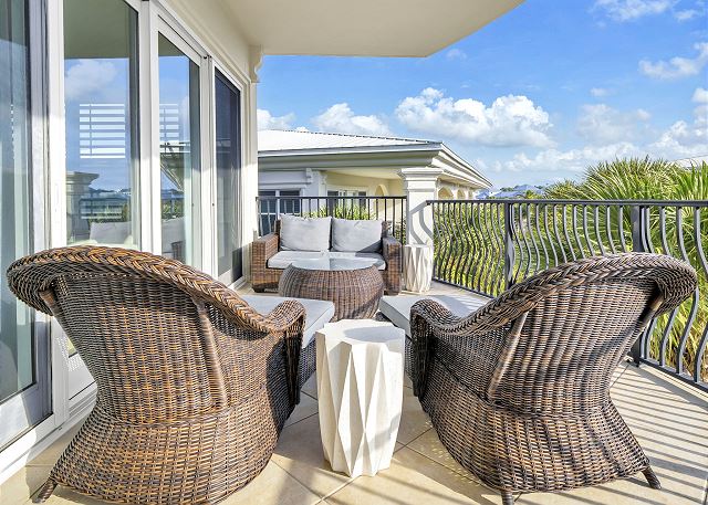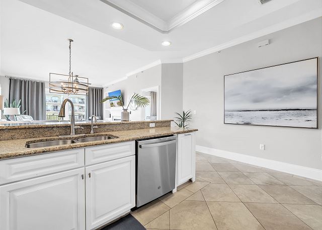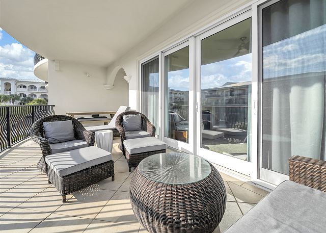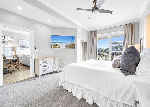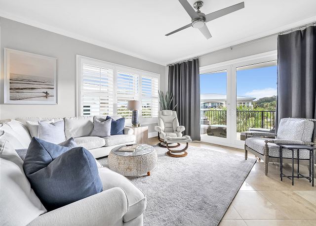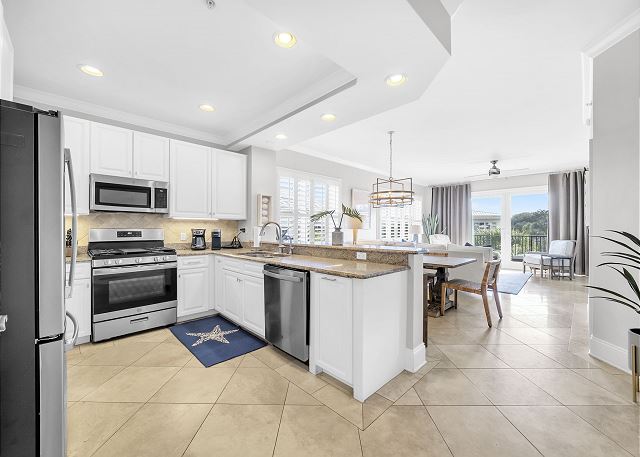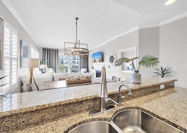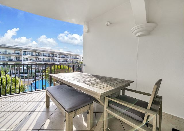 This beautiful three bedroom and three bath unit has dazzling views of the 8,000 square foot three-tiered pool that can be enjoyed from the master suite as well as the open living, dining and kitchen area.