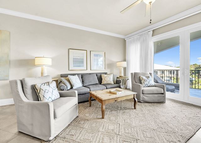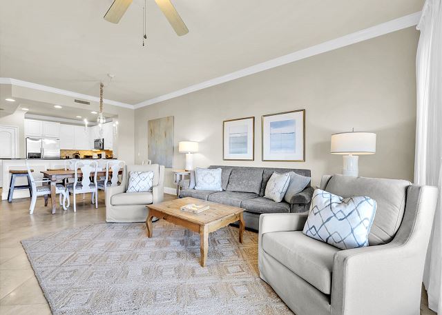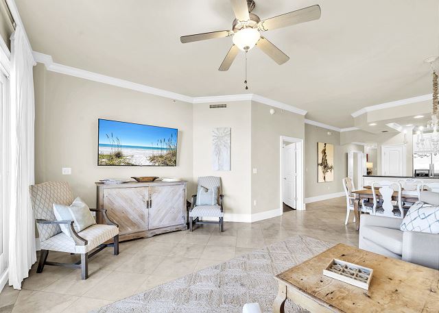 Our condo was decorated with a clean, shabby chic style. It was impeccably clean and perfectly situated. The balcony furniture was comfortable and plentiful. We would undoubtedly stay here again. No question. We also found the property management, employees and beach attendants to be very helpful and kind. The beach attendants are under a different company but they were awesome. Very accommodating.